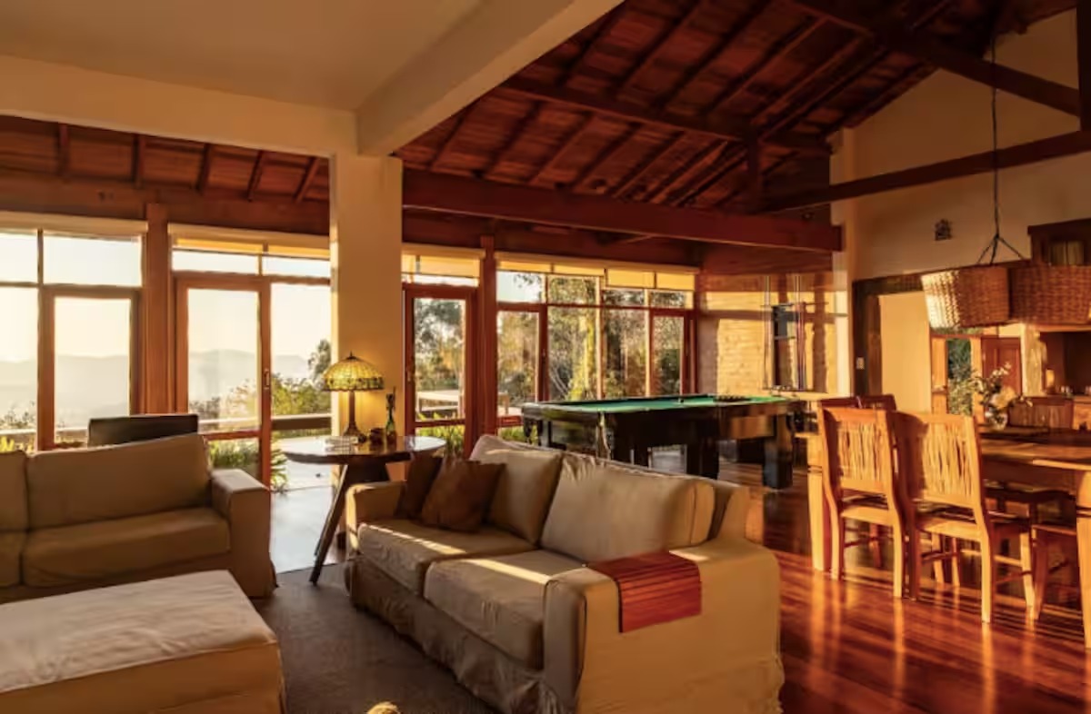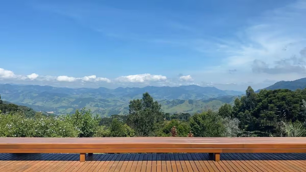 Onde o verde envolve, o silêncio acolhe e o tempo desacelera. Em meio a 20.000 m² de natureza preservada, esta casa na montanha oferece um modo de viver raro: espaço, vista aberta para a Serra da Mantiqueira e uma sensação constante de bem-estar. Um refúgio pensado para quem valoriza privacidade real, paisagem permanente e conforto sem excessos. A arquitetura combina madeira, luz natural e integração. A sala, com lareira, convida a encontros longos, conversas sem pressa e noites aquecidas pelo clima da serra. Os ambientes se conectam com leveza ao exterior, criando uma relação contínua entre casa e paisagem. Na área externa, a experiência se completa: piscina aquecida com borda infinita, mini spa com hidromassagem e jardim amplo formam um cenário que lembra férias permanentes — daqueles que não se explicam, apenas se vivem. As suítes oferecem silêncio, conforto e descanso verdadeiro. A suíte master, em especial, traduz o espírito da casa: acolhimento, charme e tranquilidade para noites profundas e dias leves. Inserida em rua fechada, com excelente acesso, esta propriedade equilibra isolamento e praticidade na medida certa. Um endereço para quem entende que viver bem é escolher espaço, natureza e serenidade.