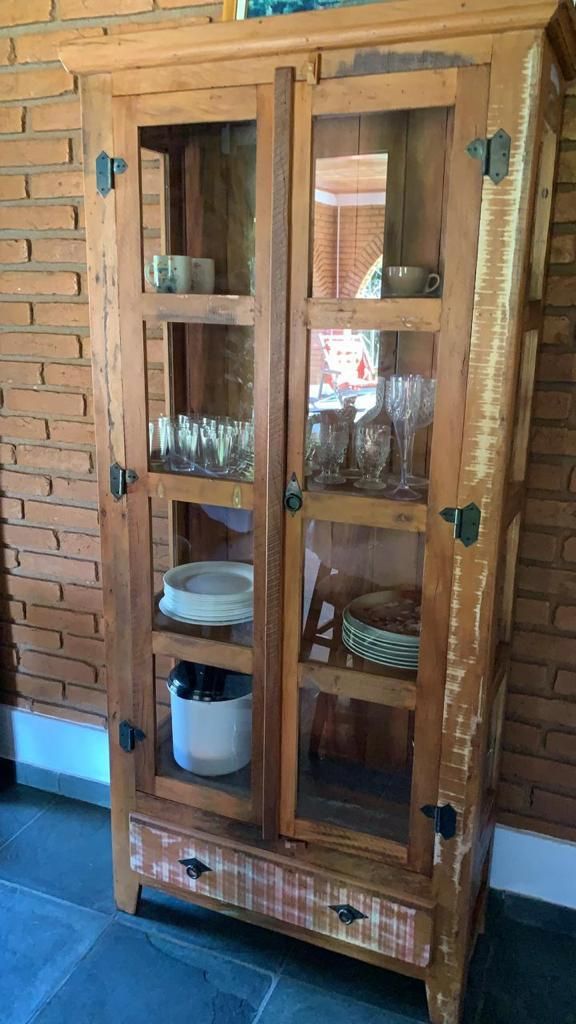 Mobiliário rústico exclusivo, feito sob medida em peroba rosa e madeira de demolição – cristaleiras, mesas, racks, cômodas e muito mais