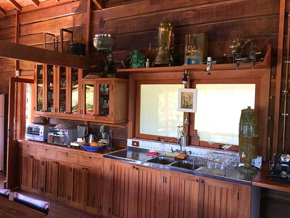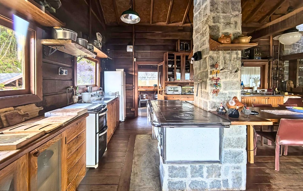 Arquitetura de Alma e Materiais Nobres A casa sede, com 300m², é um manifesto à construção atemporal em madeira Itaúba, com esquadrias em Angelim Pedra e pisos em Ipê. São 4 suítes generosas integradas a muros de granito, remetendo à antiga extração de mármore da região. A estrutura conta ainda com uma casa de apoio independente de 100m², garagem e infraestrutura moderna.