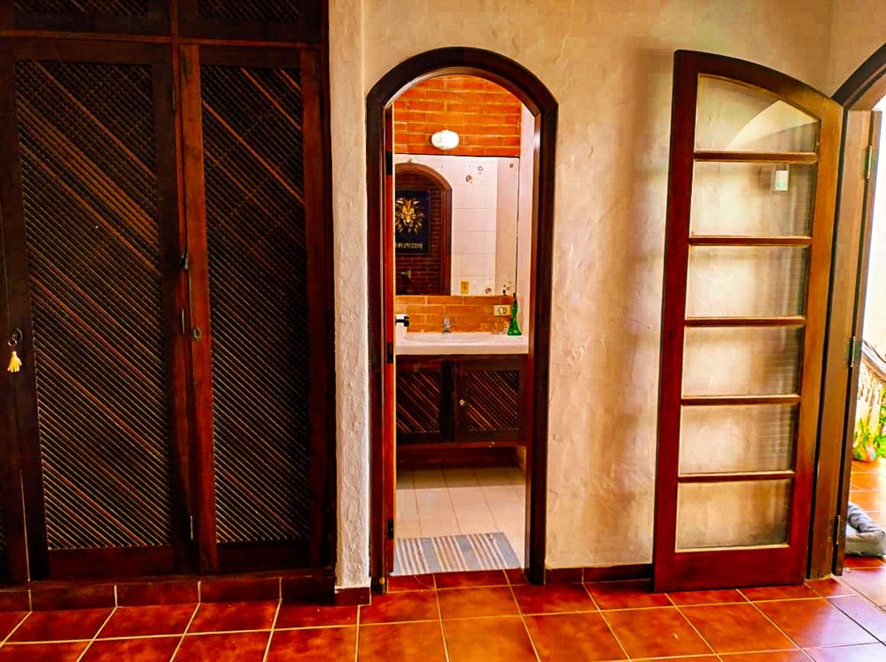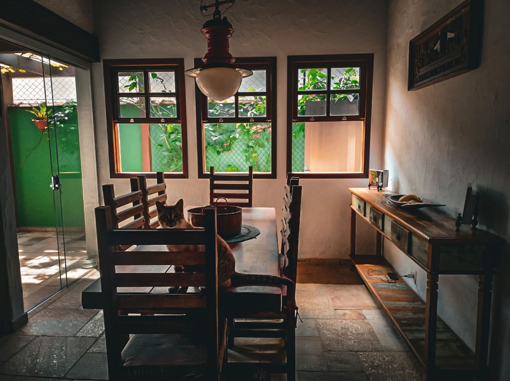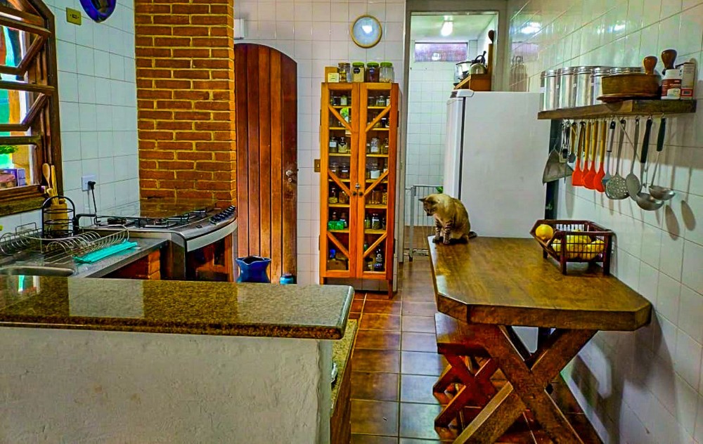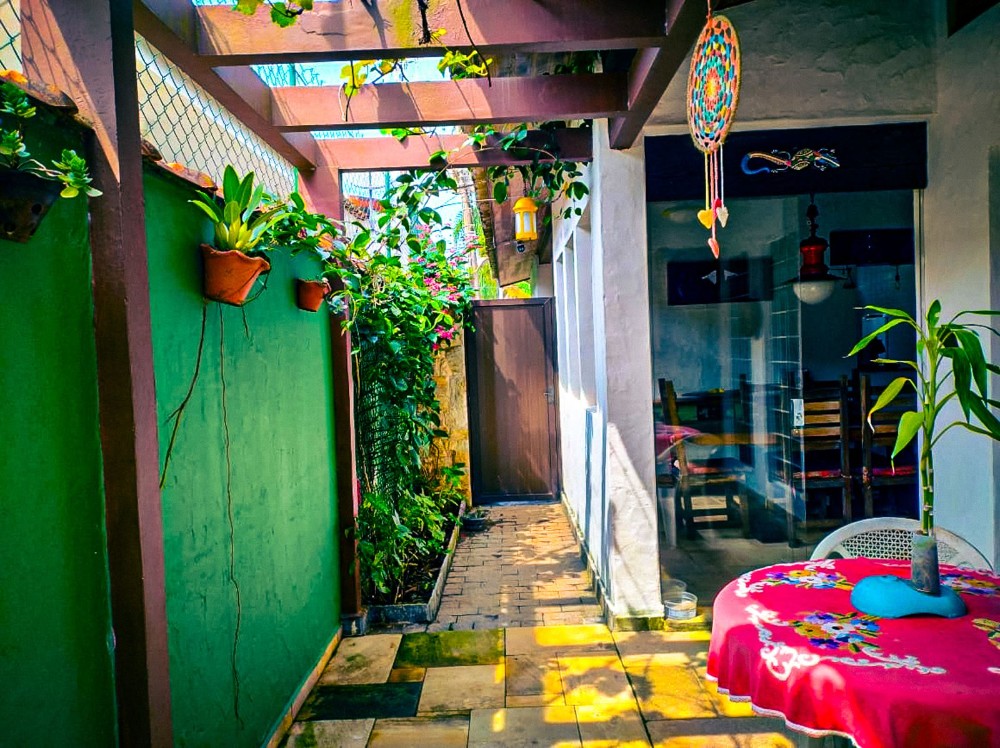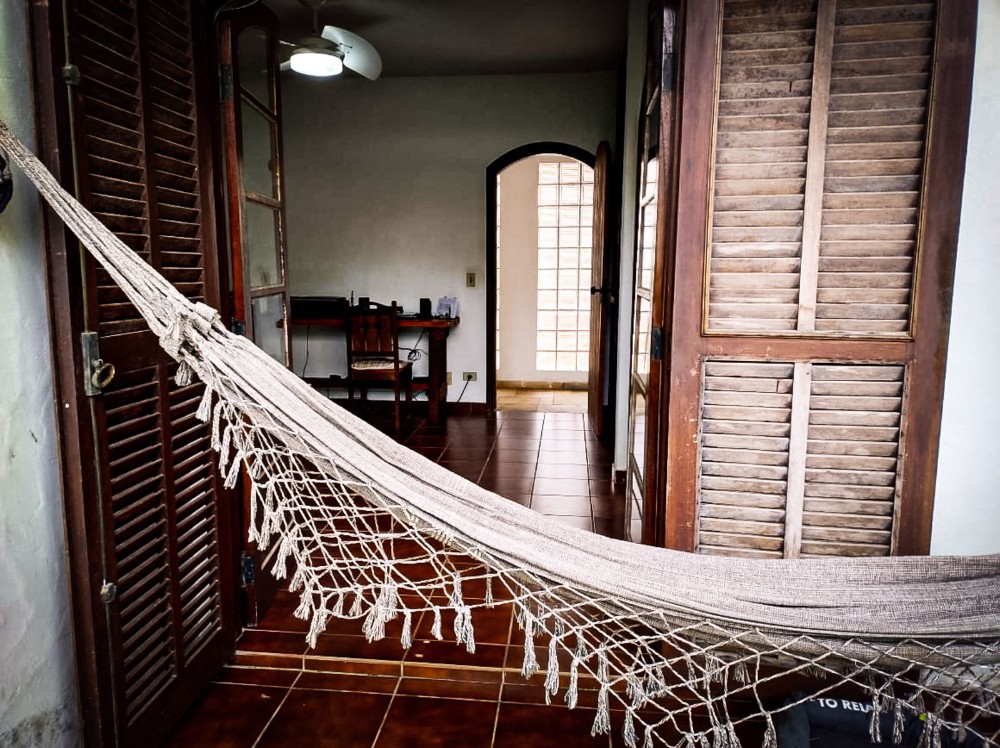 O jardim envolve toda a propriedade, trazendo um ambiente agradável e contato direto com a natureza, com árvores frutíferas que agregam charme e bem-estar ao espaço. O imóvel dispõe também de 2 vagas de garagem.