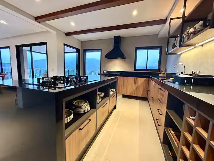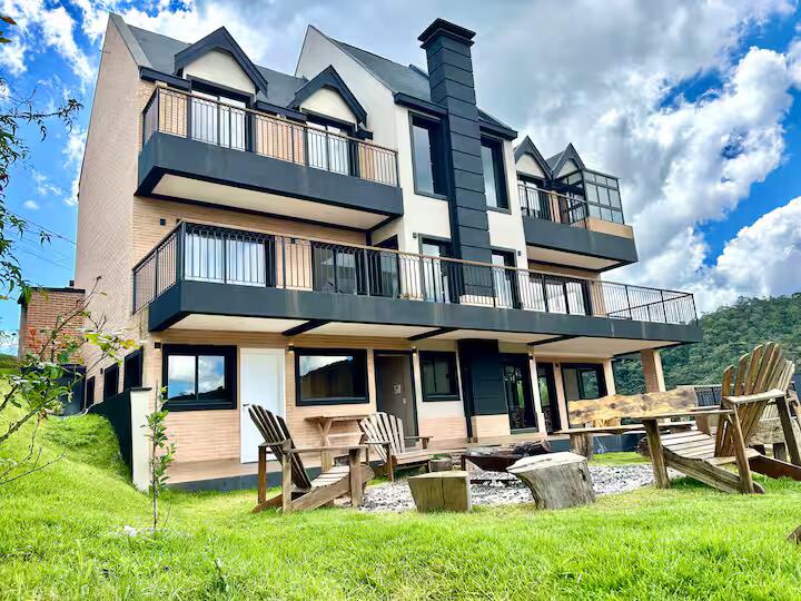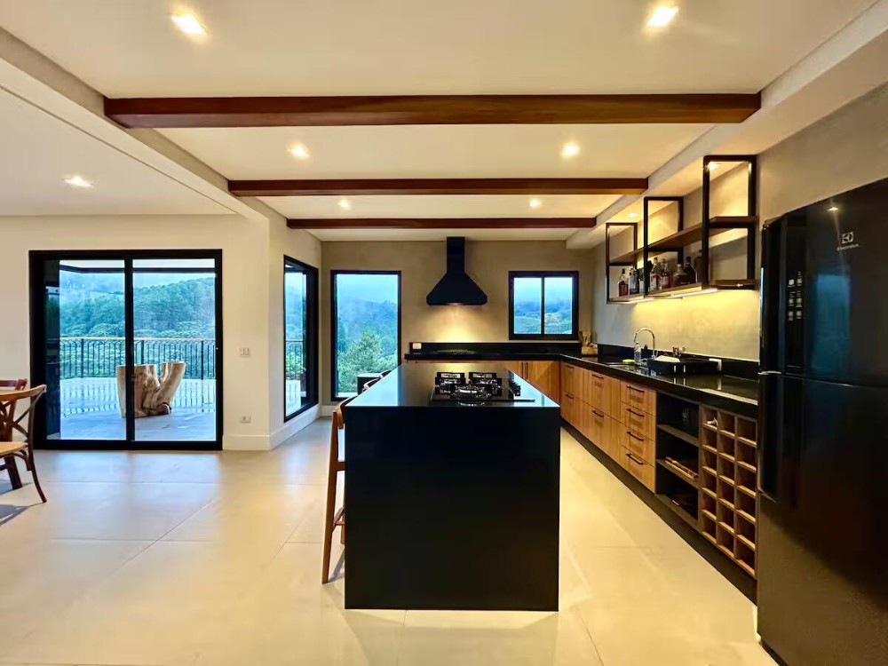 Esta residência recém-construída no Condomínio Recanto do Sol redefine o conceito de morar na montanha ao unir estética contemporânea e funcionalidade. Projetada para fundir-se à mata de araucárias, a casa oferece um estilo de vida exclusivo com total segurança.