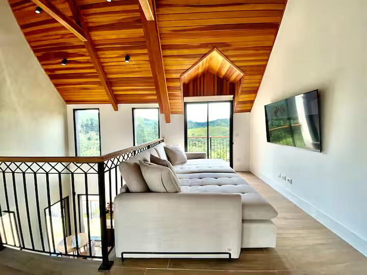 Pavimento Superior: Outras duas suítes espaçosas e luminosas, além de um mezanino aconchegante para sala de TV.