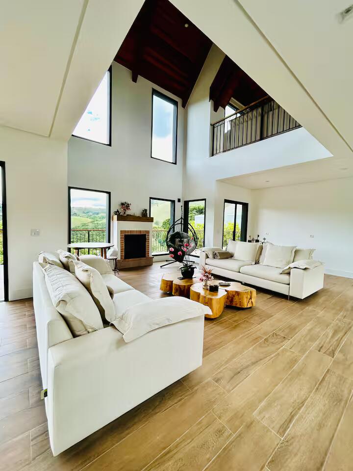 Área Social: Sala ampla com lareira e vista panorâmica permanente para as montanhas.