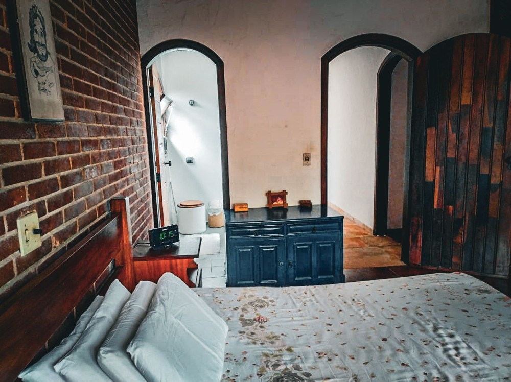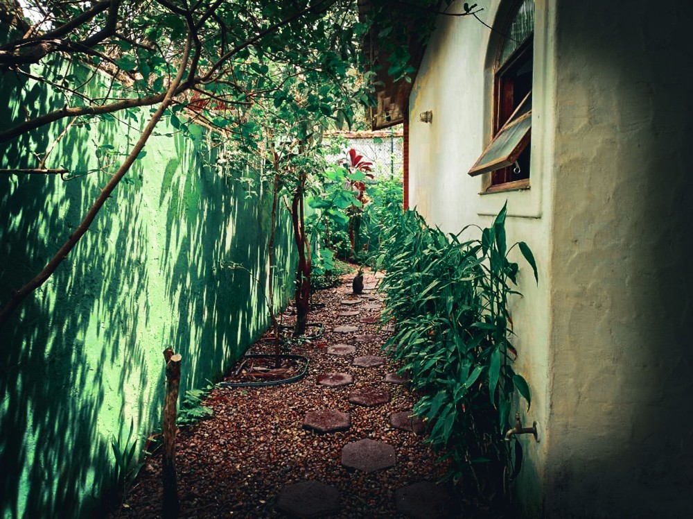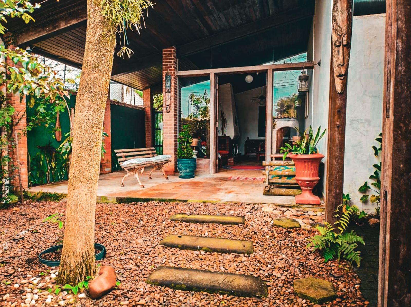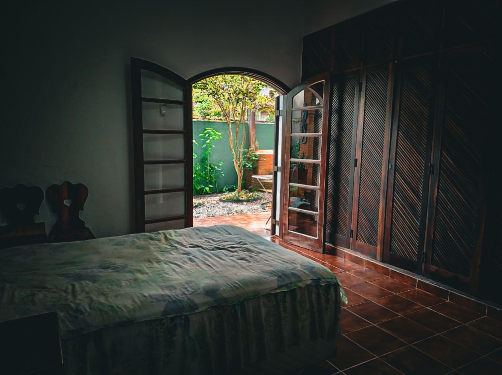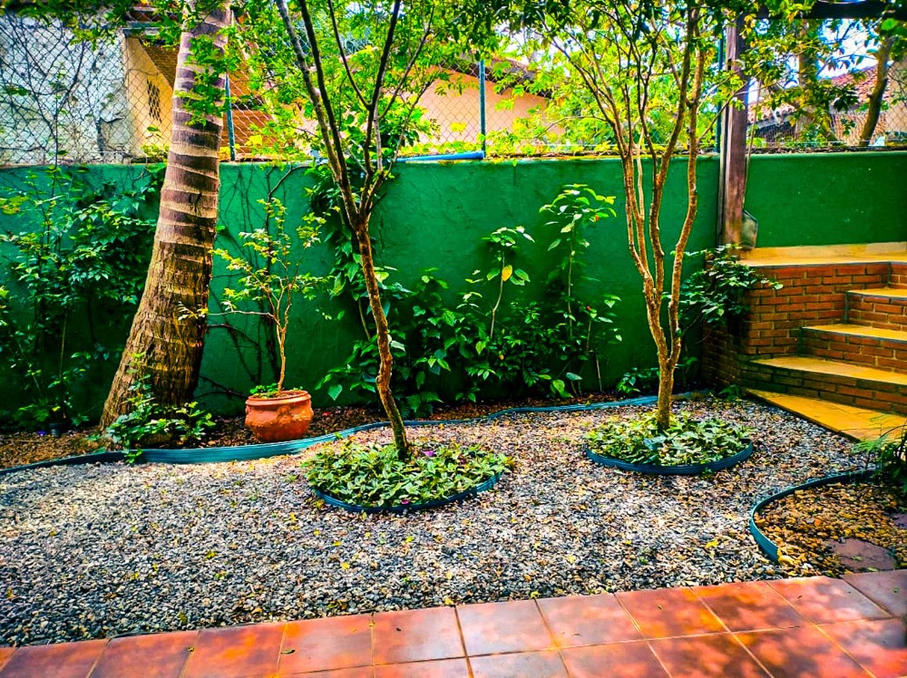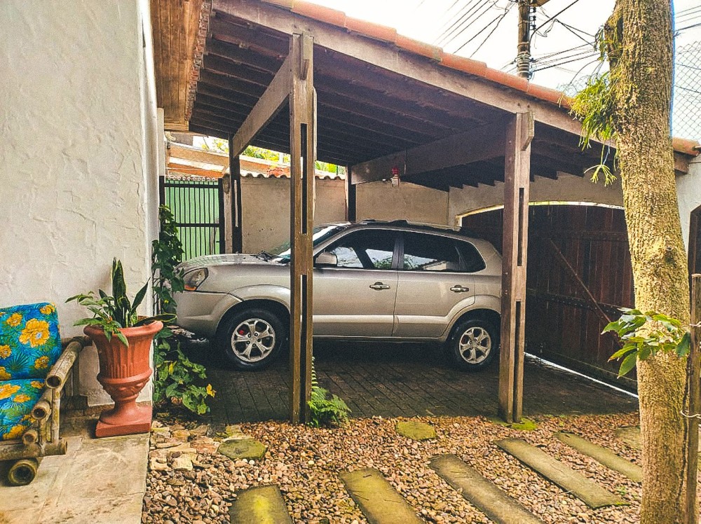 O jardim envolve toda a propriedade, trazendo um ambiente agradável e contato direto com a natureza, com árvores frutíferas que agregam charme e bem-estar ao espaço. O imóvel dispõe também de 2 vagas de garagem.